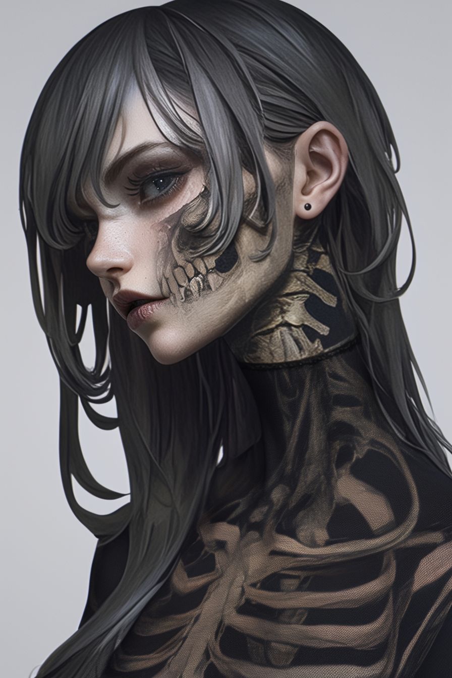Portrait photography of Nami, human skeleton, One Piece, in the style of realism, captures the mesmerizing natural light display in the Earth's polar regions, 3D, 8K